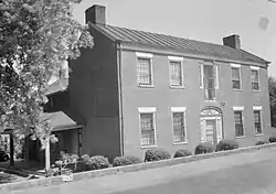 The house was built by a Mr. P. Harrison in the early 19th century,[2] seemingly between 1815 and 1825,[3] using the then-popular Federal style of architecture.[2] Executed in brick,[1] the design included standard Federal elements such as the chimneys atop the gabled ends of the house and a fanlight at the entrance.[2] Additional exterior components included brick lintels for the windows and a brick archway surrounding the main entrance. In its earlier years, the house possessed rich fireplace mantels and cupboards, but surveyors from the Historic American Buildings Survey in the 1930s noted that they had been removed by an owner who had no interest in the house's history.[3]
