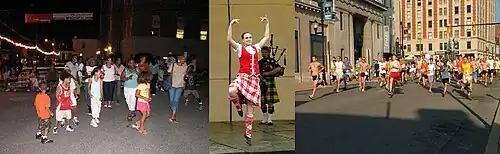 Left, the West Virginia Black Heritage Festival in Clarksburg, WV. Center, the Scottish Festival & Celtic Gathering in Bridgeport, WV. Right, the West Virginia Italian Heritage Festival in Clarksburg.