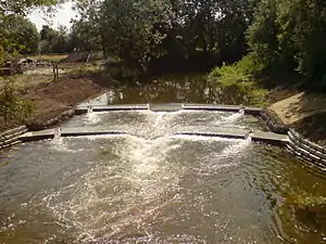 Old 2-step weir in flood