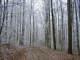 The Harthausen Forest (German: Harthäuser Wald) is a large forested area that – depending on the definition used – is 20 to over 30 km² in area. It lies in the north of Baden-Württemberg between the valleys of the lower reaches of the Jagst and Kocher on a hill ridge which is up to 334 m above sea level (NN). The largest part of the forest lies on the territory of Hardthausen am Kocher and thus in the county of Heilbronn district, a smaller part in the east is in Hohenlohekreis district.