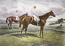 As a two-year-old, Harvester ran six times and won twice. He first appeared at Newmarket at the start of July when he started at 8/1 for the Chesterfield Stakes. He made most of the running before being caught inside the final furlong and beaten one and a half lengths by the filly Superba.[5] A month later, Harvester ran twice in quick succession at Goodwood. He finished unplaced behind Bushey when second favourite for the Richmond Stakes and was unplaced again two days later behind Superba in a Rous Memorial Plate.[6] At Newmarket in October he won the Triennial Produce Stakes from Knight Errant and the Clearwell Stakes,[7] by a head from Condor[8] before returning to the same course later in the month for the Dewhurst Stakes. He ran prominently for much of the way before fading into sixth place behind an unnamed filly who later became known as Queen Adelaide.[9]