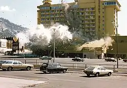 The Harvey's Resort Hotel bombing took place on August 26–27, 1980, when several men masquerading as photocopier deliverers planted an elaborately booby trapped bomb containing 1,000 pounds (450 kg) of dynamite at Harvey's Resort Hotel (now "Harveys") in Stateline, Nevada, United States.[2] After an attempt to disarm the bomb, it exploded, causing extensive damage to the hotel but no injuries or deaths. The total cost of the damage was estimated to be around $18 million.[3] John Birges Sr. was convicted of having made the bomb with a goal of extorting money from the casino after having lost $750,000 there. He died in prison in 1996, at the age of 74.