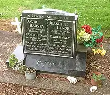 Harvey (28), and Jeannette (30), were found to be missing from their bloodstained farmhouse on 22 June 1970 by Demler (died 4 November 1992), who had been asked to look in on them by an alarmed neighbour because they had not answered the telephone for days.[3]: 101 The Crewes' 18-month-old daughter Rochelle was distraught in her cot. Demler left her alone while he went on a farm errand.[3]: 103 The Crewes had last been seen on 17 June,[3]: 94 and milk, bread, and newspaper deliveries on the morning of 18 June had not been collected from the letterbox.[3]: 95