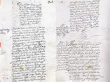 "My other colleague, the ambassador Philippus Faxecura, after he reached his aforementioned king (Date Masamune), was greatly honored by him, and sent to his own estate, to rest after such a long and tiring journey, where he made his wife, children, servants, and many other vassals into Christians, and advised other nobles who were his kith and kin to accept the faith, which they indeed did. While he was engaged in these and other pious works, a full year after his return, having provided much instruction and a great example, with much preparation, he piously passed on, leaving for his children by a special inheritance the propagation of the faith in his estate, and the protection of the religious (i.e. "members of religious orders") in that kingdom. The King and all the nobles were greatly saddened by his passing, but especially the Christians and Religious, who knew very well the virtue and religious zeal of this man. This is what I heard by letters from the very Religious who administered the sacraments to him, and who had been present at his death, as well as from others."[35][lower-alpha 10]