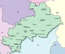 Hautes-Alpes (French pronunciation: [ot.z‿alp] ; Occitan: Auts Aups; English: Upper Alps) is a department in the Provence-Alpes-Côte d'Azur region of Southeastern France. It is located in the heart of the French Alps, after which it is named. Hautes-Alpes had a population of 141,220 as of 2019,[3] which makes it the third least populated French department. Its prefecture is Gap; its sole subprefecture is Briançon. Its INSEE and postal code is 05.
