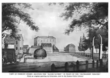 The Haymarket Theatre (1796-1803) or Hay-Market Theatre was a theatre in late-18th century Boston, Massachusetts.[1] Organized by Charles Stuart Powell, it occupied a large, wooden building "opposite the Mall on Common (later Tremont) Street, near Hatch's Tavern."[2] In addition to dramatic plays, the theatre presented some 62 musical entertainments during its first 5 years.[3] The Haymarket "was seldom used after 1800, and on March 3, 1803, it was offered for sale at auction on the condition that it be removed in 60 days."[2]