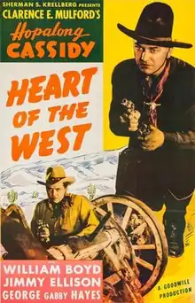Heart of the West is a 1936 American Western film directed by Howard Bretherton and written by Doris Schroeder. The film stars William Boyd, James Ellison, George "Gabby" Hayes, Sidney Blackmer, Lynn Gabriel, Fred Kohler and Warner Richmond. The film was released on July 24, 1936, by Paramount Pictures.[1][2]