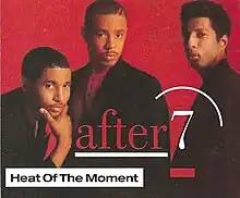 "Heat of the Moment" is a song performed by After 7, issued as the lead single from the group's eponymous debut album in 1989. While reaching number 5 on the Billboard R&B chart, it stalled at number 74 on the Billboard Hot 100. It reentered the Hot 100 in late 1990, peaking at No. 19 on the Billboard Hot 100 in early 1991.