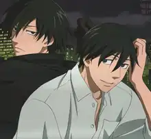 Critical response to Hei was initially confused about his true nature, with critics uncertain of whether he was fundamentally caring or heartless.[52] Hei's humanity despite his job was generally well-received, however.[53][54][55][56] Hei is seen in the anime's action scenes,[55][56] and his apparent romantic relationship with Amber helps to illuminate his past.[57] Hei's character development in the series' final episodes was praised, as he interacts with Yin and Amber while ending his journey to learn the truth about his sister's fate.[58][59][60] Hei's character is a balance between human and Contractor. Originally considered a cold-hearted Contractor, the revelation that Hei is a human with supernatural powers inherited from his sister makes him a "third option" in the narrative.[61] Maxibe Gee of the University of York called the character a "posthuman noir" protagonist similar to Rick Deckard in Do Androids Dream of Electric Sheep?, Motoko Kusanagi in Ghost in the Shell and Vincent Freeman in Gattaca (1997) due to their shared backgrounds and cruelty. Gee noted the similarities in how their actions demonstrate moral ambiguity and personal desires. In Hei's case, Gee focused on his relationship with the humans known as dolls: "identities which are formed by encompassing others, embracing the team of both humans and posthumans". Hei and Yin, strangers in a strange land, are similar to foreigners. Hei's morality is more varied than the Dolls or the other Contractors. His character, a noir protagonist, is betrayed in the second episode by a femme fatale who is a Doll rather than a human woman who is attracted to him. Hei's characterization and growth are compared with Jerold J. Abrams' commentary on the handling of noir; Hei "is defined by the journey he takes to understand his dual human/posthuman nature and his inability to come to terms with what he is."[9] According to Gee, Hei's dual personality, the ruthless assassin and the shy Li, is distinguished by his clothing; Hei is masked and wears a black coat, and Li is often dressed in white. The character's "persona fits into traditional hardboiled rational masculine tropes while the Li persona is characterized by the more stereotypically feminine attributes of empathy and intuition". He stated that Although Hei is a dark character, his humanity is revealed by his interactions with others such as Yin. Yin's humanity in the first series' finale when Hei nearly disappears into Heaven's Gate saves Hei's life and cements their bond. Instead of a happy ending, however, the original video animations and the sequel Gemini of the Meteor strike a noir note.[9]