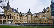 Heisdorf Castle (Luxembourgish: Schlass Heeschdref; French: Château de Heisdorf; German: Schloss Heisdorf) located in the village of Heisdorf in central Luxembourg was built by Baron Lippmann in the late 19th century. Surrounded by a large park, it was designed by the Belgian architect Charles Thirion. In 1916, the Sisters of the Christian Doctrine acquired the property as a convalescent home for their community. In 1982, it was opened as an old people's home under the name of Maison de retraite Marie-Consolatrice.[1] In 2007, a new wing was added to the building by the architecture firm Hermann, Valentiny and Partners providing improved facilities for its senior citizens.[2]