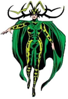 ![]() Hela, as she appeared in The Mighty Thor #190 (July 1971). Art by John Buscema. | |