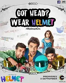 Helmet is a 2021 Indian Hindi-language comedy film with a strong message of contraceptive awareness directed by Satram Ramani and produced by Sony Pictures Films India and Dino Morea.[2][3] It features Aparshakti Khurana, Pranutan Bahl, Abhishek Banerjee, Ashish Verma and Sharib Hashmi in lead roles.[4][2] The film premiered on 3 September 2021 on ZEE5.[1] It tries to change the taboo and hesitancy associated with use of condoms in India.