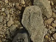 The lowest and oldest rocks on Helvellyn are those of this Lincomb Tarns Tuff Formation, which outcrop along the western side, up to roughly the 550 m (1,800 ft) contour on Whelp Side. The lowest part of the formation here is the densely welded lapilli-tuff of the Thirlmere Member, in which the individual pieces of semi-molten lava were flattened under the weight of deposits above them. Contemporaneous movement on the caldera's boundary fault has produced a thick deposit of breccia[42] above the Helvellyn Screes and on Browncove Crags. The Thirlmere Member is overlain by a deposit of volcaniclastic sandstone, the Raise Beck Member, deposited in water during a break in the volcanism, but succeeded by further thick ignimbrite deposits.[43][44]