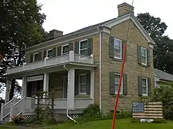The Henderson Lewelling House, also known as the Lewelling Quaker Museum, is a historic building located in Salem, Iowa, United States. Henderson Luelling (as he more consistently spelled his surname, following his father's practice[2]) and his wife Elizabeth were among the first settlers in the Quaker community of Salem in 1837. They moved here from Henry County, Indiana, and Henderson moved his fruit tree nursery with him. This was Iowa's first commercial nursery.[3] Henderson built this two-story stone house with Greek Revival details in 1843. The Lewellings were abolitionists associated with the Society of Anti-Slavery Friends, and his home is thought to have been a stop on the Underground Railroad.[3] The family left Salem for Oregon in 1847, taking the nursery with them.