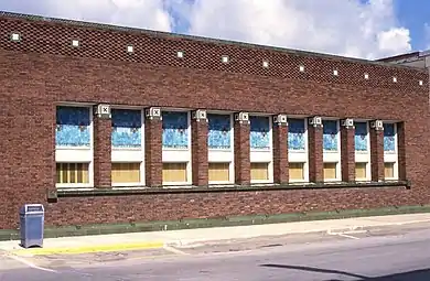 Although it was not designed as a bank, and has never served as such, the building is nonetheless considered one of Sullivan's "Jewel Boxes," a series of banks designed and built in the Midwest between 1909 and 1919.[2] As in the other "Jewel Boxes," Sullivan included many windows, both on the street side and in the skylight that allowed a great deal of natural light inside. The simple massing of this small, rectangular building with its clearly defined structure was typical of Sullivan's later work. The same massing and similar detailing, particularly the entrance, was used by Sullivan's former associates Purcell & Elmslie in their slightly larger Exchange State Bank in Grand Meadow, Minnesota in 1910, and it is possible that this design influenced Sullivan. (Brooks) Sullivan was assisted in the design by his draftsman, Parker Berry, who drew the perspectives.