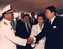 Born into an illustrious naval family on both his mother's and father's sides, Vice Admiral Henry C. Mustin furthered the family's reputation for service to country. His father’s side dated back to the War of 1812. His third-great-grandfather was Commodore Arthur Sinclair IV, who was voted a silver service by Congress for victories over the British in the Battle of the Great Lakes in 1812. And then there were a series of Arthur Sinclairs, one of whom commanded the stores ship Supply in Commodore Perry's expedition to open Japan. During the American Civil War another Arthur Sinclair, VADM Mustin's great-great-uncle, served in the Confederate States Navy with Captain Raphael Semmes in the CSS Alabama and fought in the Battle of Hampton Roads aboard CSS Virginia. Then down from that side, his grandfather and namesake, Captain Henry C. Mustin, was the first of many Mustins to attend the United States Naval Academy as a member of the Class of 1896. He was Naval Aviator #11 and considered by many to be the father of naval aviation, having established Naval Air Station Pensacola, being the first to be catapulted off a ship underway, and being in command of the aviation detachment that fought at the Battle of Veracruz, which was the first time that any U.S. aviator of any service was fired on by ground forces. Admiral Mustin's grandmother, Corinne Mustin, was a first cousin of Wallis Simpson, the Duchess of Windsor. When his grandfather Henry Mustin died, she remarried Admiral George D. Murray, Naval Academy Class of 1910. Murray was captain of the Enterprise during the Doolittle Raid and at the Battle of Midway, and was a close friend of Admiral Chester Nimitz. After the Japanese surrendered to the United States on board USS Missouri, Admiral Nimitz signed a copy of the picture to Admiral Murray with thanks. At the end of the war, he was the commander of the Mariana Islands, and accepted the Japanese surrender of the Caroline Islands aboard his flagship, the cruiser Portland (CA-33).[2][3] Admiral Mustin's great-uncle was General George Barnett, Naval Academy Class of 1881 and 12th commandant of the U.S. Marine Corps. Mustin was the third generation of his family to attend the US Naval academy. His father, Vice Admiral Lloyd M. Mustin, was Naval Academy class of 1932. His brother and one of his sons also graduated from Annapolis. Mustin said: "I’m the class of ’55, my brother, Tom, is the class of 62, and my youngest son, John, is the class of ’90."