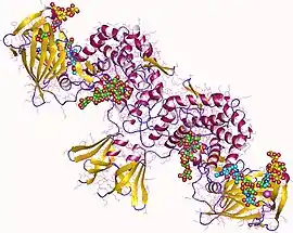 - ↑ Bäckström G, Höök M, Lindahl U, Feingold DS, Malmström A, Rodén L, Jacobsson I (April 1979). "Biosynthesis of heparin. Assay and properties of the microsomal uronosyl C-5 epimerase". The Journal of Biological Chemistry. 254 (8): 2975–82. doi:10.1016/S0021-9258(17)30171-0. PMID 107165.