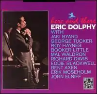 Here and There is a jazz album by multi-instrumentalist Eric Dolphy. It was originally released in 1966 on the Prestige label as PRLP 7382. It contains tracks recorded on three separate dates, in different locations. Mal Waldron's "Status Seeking" and Dolphy's solo bass clarinet version of Billie Holiday's "God Bless the Child" were recorded on July 16, 1961 at the Five Spot in New York City as part of the concert that was documented on the At the Five Spot recordings.[2] (This version of "God Bless the Child" was Dolphy's first recorded performance of the tune.)[3] "April Fool" and "G.W. (Take 1)" were recorded on April 1, 1960 at Van Gelder Studio in Englewood Cliffs, New Jersey as part of the session that yielded Outward Bound, Dolphy's first album as a leader.[4] ("G.W. (Take 1)" is an alternate take of the first track on Outward Bound. It previously appeared on Dash One, and was not part of the original LP issue of Here and There.[2][5] "G.W." is dedicated to the Californian bandleader Gerald Wilson.[6]) "Don't Blame Me" was recorded on September 6, 1961 in Berlingske Has, Copenhagen, Denmark during Dolphy's second European tour, as part of the sessions that produced Eric Dolphy in Europe Volumes 1-3.[7]