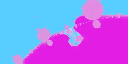 The image above uses a =0.12601278 +.0458649i, b= .12582484 +.045796497i, and is centered at a value of c = 0.3688 -.3578, which is near 5-cycles of Siegel discs in the classic Mandelbrot set. In the above image, a 5-cycle of Herman rings can be approximated by choosing a point c along the above illustrated curve having nodes on both sides, for which ga,b,c has approximately the desired winding number, using values as follows: