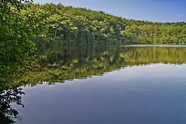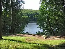 Herthasee is a lake on the island Rügen, Mecklenburg-Vorpommern, Germany. At a length of 170 m and a width of 140 m, it covers a surface area of 0.202 km2. It has a maximum depth of 11 m. It is located in the center of the Jasmund National Park and its famous chalk cliffs.