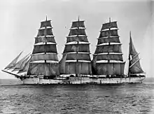 | Sail plan | 4-masted barque, 38,000 square feet (3,530 m2) sail area |