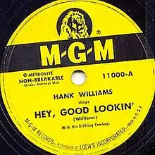 "Hey, Good Lookin'" is a 1951 song written and recorded by Hank Williams, and his version was inducted into the Grammy Hall of Fame in 2001.[4] In 2003, CMT voted the Hank Williams version No. 19 on CMT's 100 Greatest Songs of Country Music. Since its original 1951 recording it has been covered by a variety of artists.