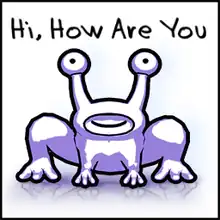 Hi, How Are You is a third-person platform game that is based on the art and music of Daniel Johnston. It was developed by Peter Franco and Stephen Broumley of Dr Fun Fun and Smashing Studios for the iPhone and iPod Touch. Players control Jeremiah the frog and navigate platform mazes in order to win back his true love from Satan.