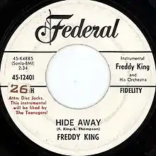 "Hide Away" or "Hideaway" is a blues guitar instrumental that has become "a standard for countless blues and rock musicians performing today".[1] First recorded in 1960 by Freddie King, the song became a hit on the record charts. It has been interpreted and recorded by numerous blues and other musicians and has been recognized by the Rock and Roll Hall of Fame and the Grammy Hall of Fame.