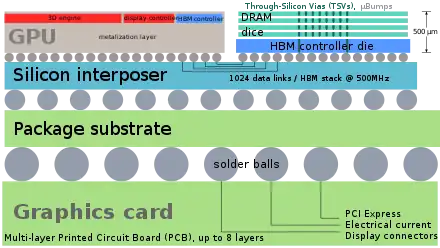 - ↑ Smith, Ryan (19 May 2015). "AMD HBM Deep Dive". Anandtech. Retrieved 1 August 2016.