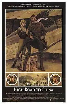 High Road to China (a.k.a. Raiders of the End of the World) is a 1983 American adventure-romance film set in the 1920s starring Tom Selleck in his first major starring role, playing a hard-drinking biplane pilot hired by society heiress Eve "Evie" Tozer (Bess Armstrong) to find her missing father (Wilford Brimley). The supporting cast includes Robert Morley and Brian Blessed. The Golden Harvest film (released by Warner Bros.) is loosely based on the 1977 novel of the same name by Jon Cleary. However, little beyond character names and the basic premise of an aerial race to China survived the translation to film.