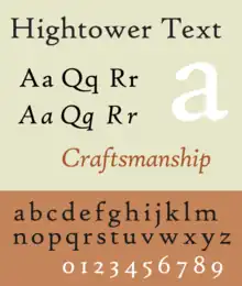 Hightower Text is a serif typeface designed by Tobias Frere-Jones. It is loosely based on the printing of Nicolas Jenson in Venice in the 1470s, in what is now called the "old style" of serif fonts.[1]