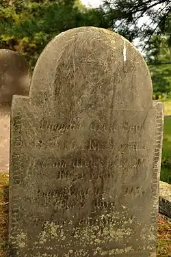 ![]() Gravestone of a child, c. 1777 | |