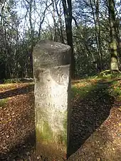 Among the artefacts found was an old milestone that was discarded during the rebuilding of the road in 1826. The 1811 Ordnance Survey map was used to identify the original position of the stone where it has since been re-erected. The pre-1826 road is now a pedestrian way to Gibbet Hill.[32] Other artefacts of archaeological interest included two lime kilns found near the Thursley side of the works dating from the 18th or 19th century. It is probable that lime produced by the kilns used limestone or chalk from Petersfield 25 kilometres (16 mi) away and would have been used to counteract the acid nature of the soil.[8]