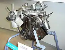 As Hino had a business relationship with Renault at the time, and the powertrain was largely adapted from an existing Renault product, there are clear similarities to the Renault Dauphine. The drivetrain and suspension were carried over from the Hino Renault 4CV (series PA). The main improvement over the 4CV was that the Contessa 900 was a full five-seater, making it a much stronger competitor.[3] The engine was installed longitudinally, meaning the radiator was against the outer edge of the engine bay, whereas the Renault installed the radiator against the firewall, and the Hino engine sat in a north-south orientation with the transmission attached inside the engine bay next to the Contessa's firewall. The engine was slanted to the left, and utilized a crossflow cylinder head. The rear suspension used swing axles.
