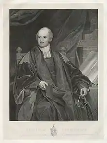 Wholesale reform of Oxford examinations began in the late eighteenth century, proposed by, among others, Brasenose's John Napleton in his pamphlet Considerations on the Public Exercises for the First and Second Degrees in the University of Oxford. It was Cleaver and his successor Frodsham Hodson that would continue the reforms and apply them to Brasenose itself.[84] Cleaver was from the minor gentry and set out from the start to make Brasenose the place of rich men. Unable to secure the librarianship of the Bodleian whilst fellow, he had instead become tutor to his patron George Nugent-Temple-Grenville, 1st Marquess of Buckingham – a position which he used to lead two of the Duke's sons and other members of the family to Brasenose; the sons' uncle, Baron Grenville, became the university's chancellor. Under his leadership into the early nineteenth century, numbers improved dramatically and so did the class of people coming: Brasenose began to be dominated by gentlemen like the Egertons, the Grenvilles, and of Richard Rainshaw Rothwell I. Its income over doubled between 1790 and 1810 to £9,200 per annum, with the college maintaining its links to the north-west.[85] Among the other acquisitions of Cleaver was the services of Hodson, a Liverpudlian.[86]