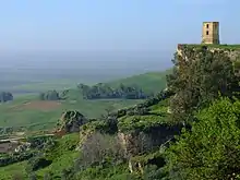 The history of Carmona begins at one of the oldest urban sites in Europe, with nearly five thousand years of continuous occupation on a plateau rising above the vega (plain) of the River Corbones in Andalusia, Spain. The city of Carmona lies thirty kilometres from Seville on the highest elevation of the sloping terrain of the Los Alcores escarpment, about 250 metres above sea level. Since the first appearance of complex agricultural societies in the Guadalquivir valley at the beginning of the Neolithic period, various civilizations have had an historical presence in the region. All the different cultures, peoples, and political entities that developed there have left their mark on the ethnographic mosaic of present-day Carmona.[1] Its historical significance is explained by the advantages of its location. The easily defended plateau on which the city sits, and the fertility of the land around it, made the site an important population center. The town's strategic position overlooking the vega was a natural stronghold, allowing it to control the trails leading to the central plateau of the Guadalquivir valley,[2] and thus access to its resources.