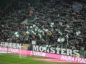 In the 2004–05 season of the Hungarian League, Ferencváros finished second and therefore qualified for the 2005-06 UEFA Cup.[181] On 14 July 2005, Ferencváros lost 0–2 to Partizan Minsk at home.[182][183][184] On 28 July 2005, Ferencváros beat Partizan Minsk 2–1 in Minsk, Belarus, but Ferencváros were eliminated from the UEFA Cup.[185]