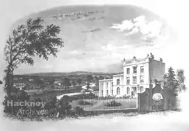Just to the south of Harringay's present-day borders, a large mansion, Northumberland House, was built by 1824[30] just to the south of the New River on the east side of Green Lanes. The building, which was converted for use as a lunatic asylum as in 1826,[31] remained until the late 1950s when it was demolished and a council housing estate built on the site.