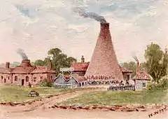 In 1826, although owned by Nathaniel Lee, the name of the occupier is William Scales and the site was trading as 'Scales Wm, brick and tile manufacturer'.[32] By 1843 the site was shown in rating records as 'Land & Potteries' as well as 'Tile Kilns and Land' together with '13 cottages compound'. This suggests that the two groups of buildings, although related, were producing slightly different goods. The cottages were those supplied for the workers.[33]