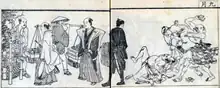 The Tokugawa shogunate went to great lengths to suppress social unrest. Harsh penalties, including crucifixion, beheading, and death by boiling, were decreed for even the most minor offenses, though criminals of high social class were often given the option of seppuku ("self-disembowelment"), an ancient form of suicide that became ritualized.[125] Christianity, which was seen as a potential threat, was gradually clamped down on until finally, after the Christian-led Shimabara Rebellion of 1638, the religion was completely outlawed.[129] To prevent further foreign ideas from sowing dissent, the third Tokugawa shogun, Iemitsu, implemented the sakoku ("closed country") isolationist policy under which Japanese people were not allowed to travel abroad, return from overseas, or build ocean-going vessels.[130] The only Europeans allowed on Japanese soil were the Dutch, who were granted a single trading post on the island of Dejima at Nagasaki from 1634 to 1854.[131] China and Korea were the only other countries permitted to trade,[132] and many foreign books were banned from import.[126]