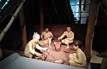 Hunter-gatherers arrived in Japan in Paleolithic times, with the oldest evidence dating to around 38–40,000 years ago.[1] Little evidence of their presence remains, as Japan's acidic soils are inhospitable to the process of fossilization. However, the discovery of unique edge-ground axes in Japan dated to over 30,000 years ago may be evidence of the first Homo sapiens in Japan.[4] Early humans likely arrived in Japan by sea on watercraft.[5] Evidence of human habitation has been dated to 32,000 years ago in Okinawa's Yamashita Cave[6] and up to 20,000 years ago on Ishigaki Island's Shiraho Saonetabaru Cave.[7]