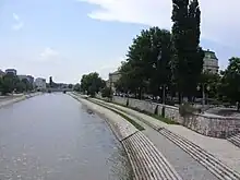 - ^ Holder and Tomaschek connected the name to Celtic river names Nava and Navios, while Detschew and Georgiev believed it to be older than the Celtic invasion, and therefore, Thracian; they derived it from Indo-European *(s)naw-ĭsjo, Old Indic snauti meaning "drops, flowing", Greek νᾱμα (nāma) meaning "stream".[65]