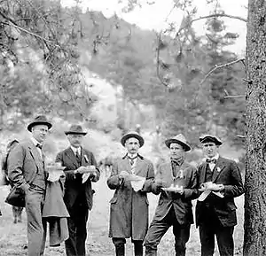 The movement to establish a national park in the Rocky Mountains in Colorado succeeded in 1915 because of the combined efforts of multiple groups of people over many years.[51] Prominent individuals in the effort included Enos Mills from the Estes Park area, James Grafton Rogers from Denver, and J. Horace McFarland of Pennsylvania.[13] Each of these men performed essential work for the cause.[52]