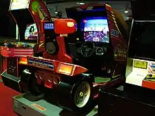 Deluxe "taikan" cabinet of OutRun, released to arcades in 1986 by Sega (pictured in 2011)
