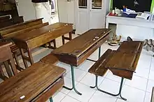 Typical school furniture of the period 1930 to 1950; Cité Découverte Nature at Miallet, Dordogne
