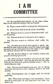 In 1866 the state legislature gave blacks the right to testify against whites in court. Before this, they had been allowed to testify only in cases involving black defendants.[81] In 1867 the 14th Amendment was ratified, granting citizenship and the right to due process under the law.