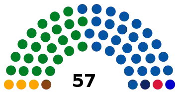 The Legislative Assembly of Costa Rica is a unicameral body of 57 deputies whose number is constitutionally fixed and who are elected in closed lists postulated by the political parties by reason of a proportional system. Different experts have recommended the increase in the number of deputies as an urgent need to improve representativeness, but this proposal is highly unpopular among the population and generates reactions of rejection.[7] A report of the United Nations Development Program and the Center of Investigation and Political Studies of the University of Costa Rica recommended to increase the number of legislators to 82.[8] the Northwestern University of Chicago made recommendations for more than 100 countries and recommended that the Costa Rican parliament should had 115 deputies according to its population (in 1999),[9] the Board of Notables for the Reform of the State summoned by President Laura Chinchilla during her tenure recommended to increase the seats to between 75 and 85.[9] The Citizen Power Now Movement on the other hand proposes to increase it to 84 and drastically reduce the number of legislative advisors (currently 12) to avoid a very large increase in expenses.[10] The proposal of the book Aplicación del modelo alemán a la elección de diputados en Costa Rica by lawyer Diego González suggests increasing the number to 143, making use, as the title indicates, of an electoral system similar to the German model.[7]