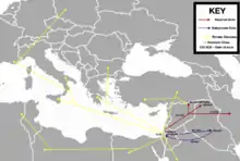 Hellenistic Judaism, originating from Alexandria, was present throughout the Roman Empire even before the Jewish–Roman wars. Large numbers of Jews lived in Greece (including the Greek isles in the Aegean and Crete) as early as the beginning of the 3rd century BCE. The first recorded mention of Judaism in Greece dates from 300 to 250 BCE, on the island of Rhodes.[12] In the wake of Alexander the Great's conquests, Jews migrated from the Middle East to Greek settlements in the Eastern Mediterranean, spurred on by the opportunities they expected.[13] As early as the middle of the 2nd century BCE, the Jewish author of the third book of the Oracula Sibyllina, addressing the "chosen people", says: "Every land is full of thee and every sea." The most diverse witnesses, such as Strabo, Philo, Seneca, Cicero, and Josephus, all mention Jewish populations in the cities of the Mediterranean Basin. Most Jewish population centers of this period were, however, still in the East (Judea and Syria) and Alexandria in Egypt was by far the most important of the Jewish communities, with the Jews in Philo's time inhabiting two of the five sections of the city. Nevertheless, a Jewish community is recorded to have existed in Rome at least since the 1st century BCE, although there may even have been an established community there as early as the second century BCE, for in the year 139 BCE, the pretor Hispanus issued a decree expelling all Jews who were not Italian citizens.[14]