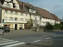 Hans Pankraz von Freyberg, the ruler of Laupheim between 1570 and 1582, explicitly forbade his subjects any contact with Jews[4] and another early local law from 1622 threatened any inhabitant of Laupheim, who got involved with Jews with a fine of 25 fl.[5] However, by then several Jewish communities had already been established in Upper Swabia. The local ruler of the nearby village of Baltringen allowed Jews to settle there in 1572. In the villages of Schwendi and Orsenhausen, the last of which still has a Judengasse ("Jews' Lane"), Jewish communities seem to have existed well before the 18th century. In Laupheim, the presence of Jewish traders on market days in the 17th century is documented.[6] Yet, permanent Jewish presence in Laupheim was not permitted until the 18th century.