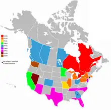 The NHL again entered lockout in 2012, cancelling the first 526 games, about 43% of the season, until at least December 30, 2012. Just after 5 am on January 6, 2013, after approximately 16 continuous hours of negotiating, the NHL and the player's union reached a tentative deal on a new collective bargaining agreement to end the lockout.[156] The first games of the season were held on January 19.[157] In 2017, the league expanded again to Las Vegas, Nevada, with the Vegas Golden Knights. In 2018, the league approved another expansion team in Seattle, Washington, the Seattle Kraken, which began play in 2021.